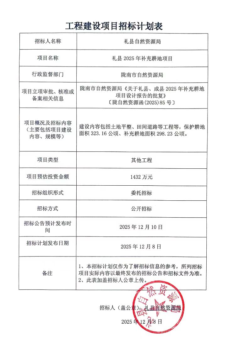 禮縣2025年補(bǔ)充耕地項(xiàng)目