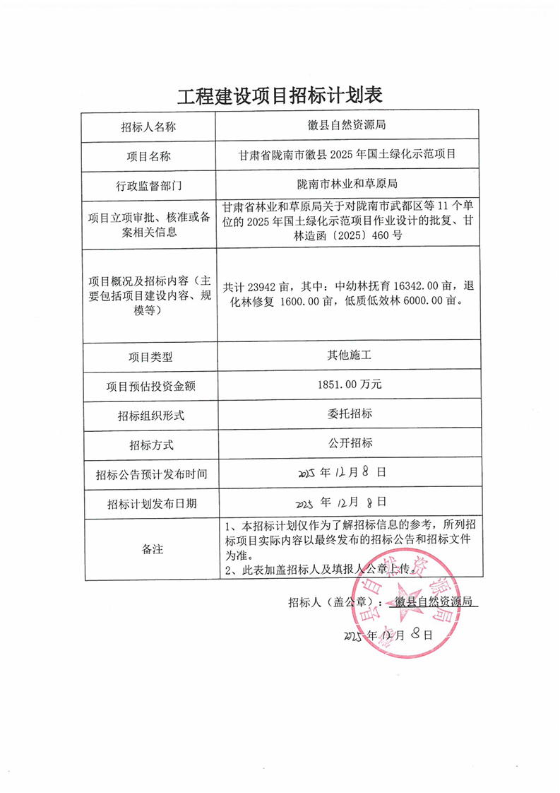 甘肅省隴南市徽縣2025年國土綠化示范項目