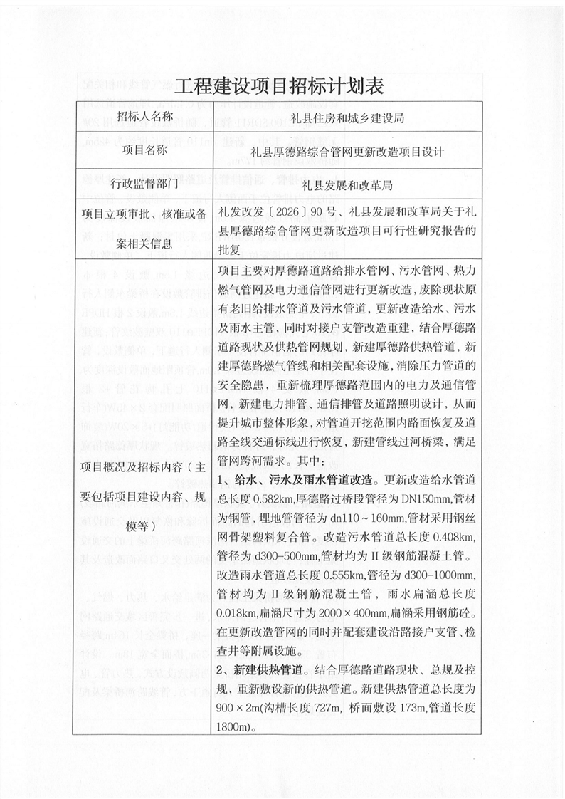 禮縣厚德路綜合管網(wǎng)更新改造項(xiàng)目設(shè)計(jì)