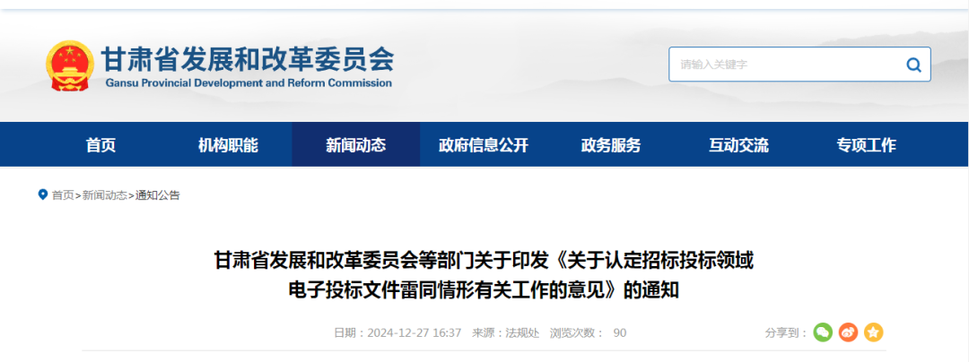 關于認定招標投標領域電子投標文件雷同情形有關工作的意見